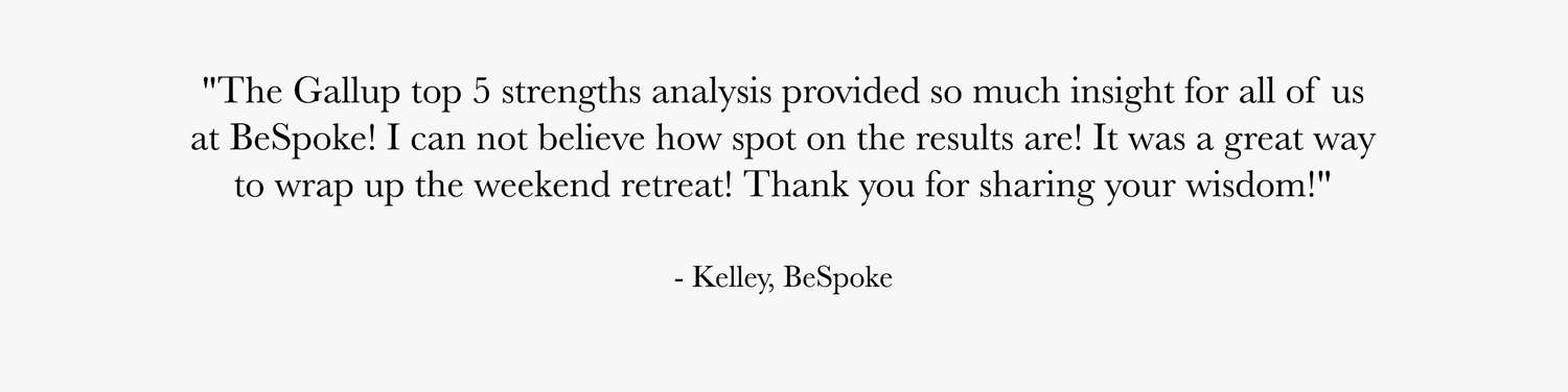 As the process launches, Carolyn employs the Gallup StrengthsFinder assessment tools to identify each individual’s top five strengths. She will begin her coaching with senior leadership to help them to use and leverage their own strengths in day-to-day operations and interactions within the organization.